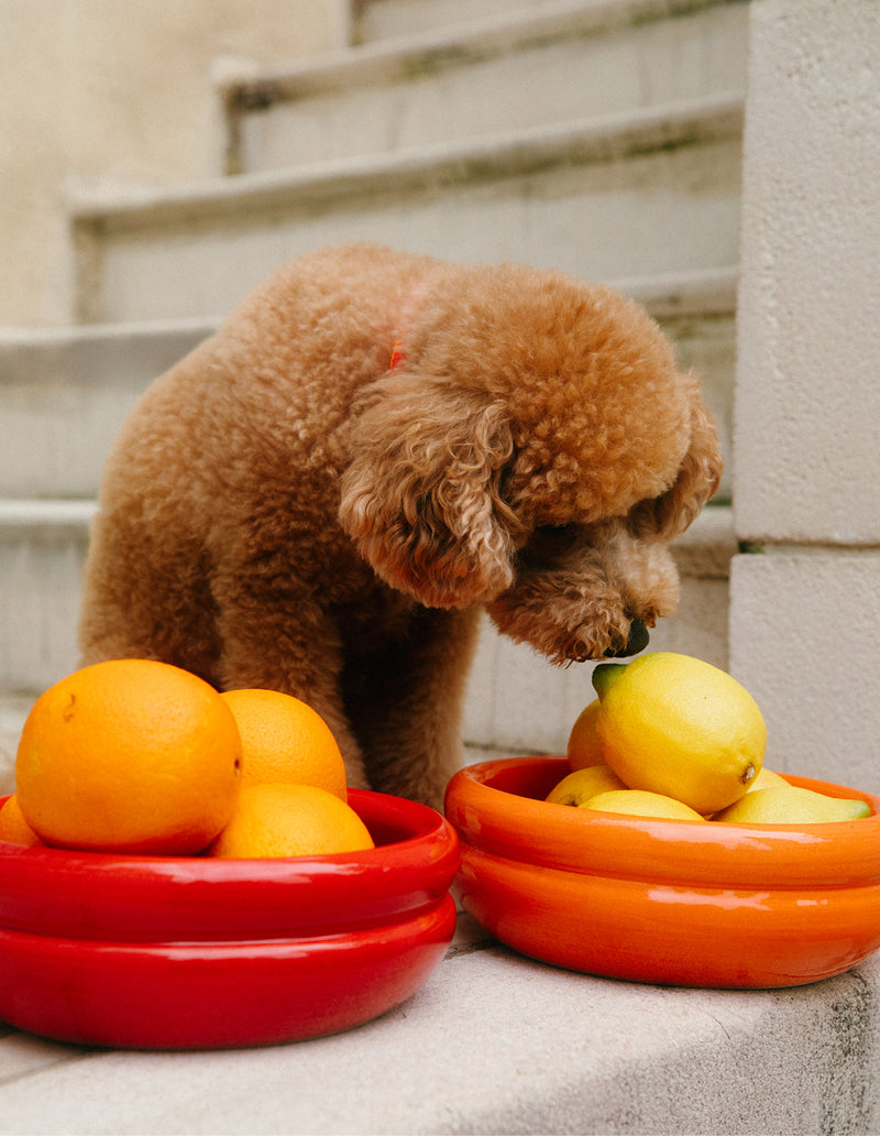Keramische hondenvoerbak met een dubbele rand. De voerbak is vaatwasserbestendig.