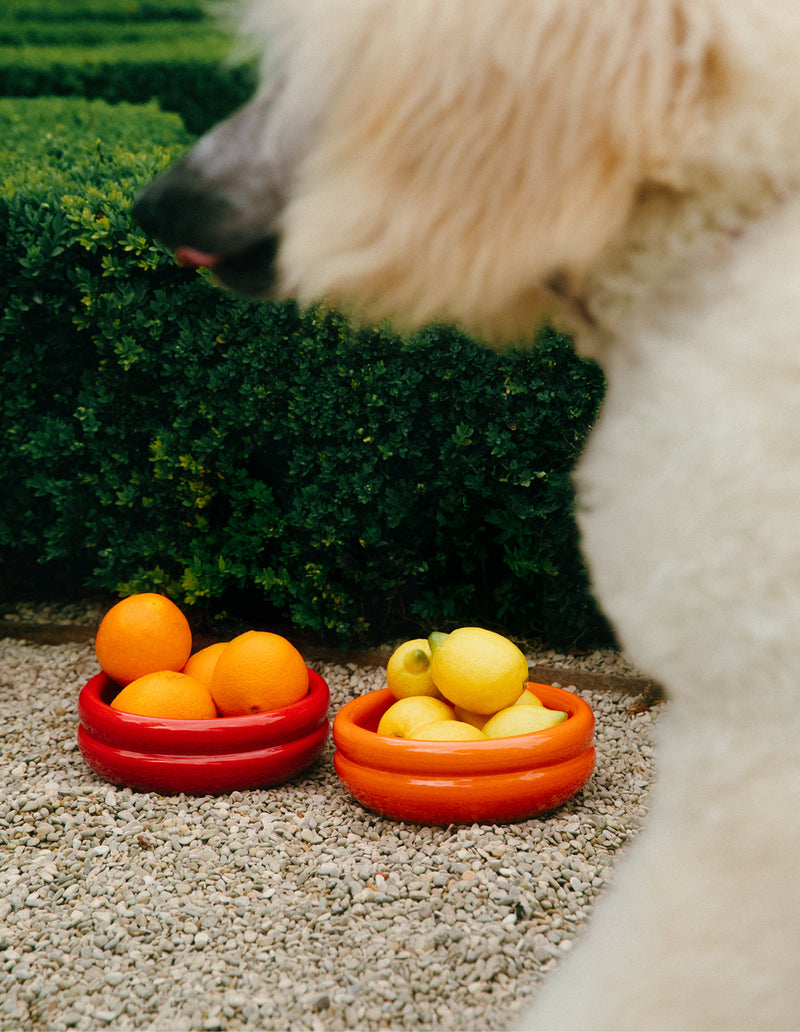 Keramische hondenvoerbak met een dubbele rand. De voerbak is vaatwasserbestendig.